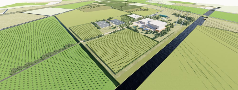 Overzichtsfoto innamepompstation Bergsche Maas en afgezonken leidingen naar spaarbekken De Gijster.
