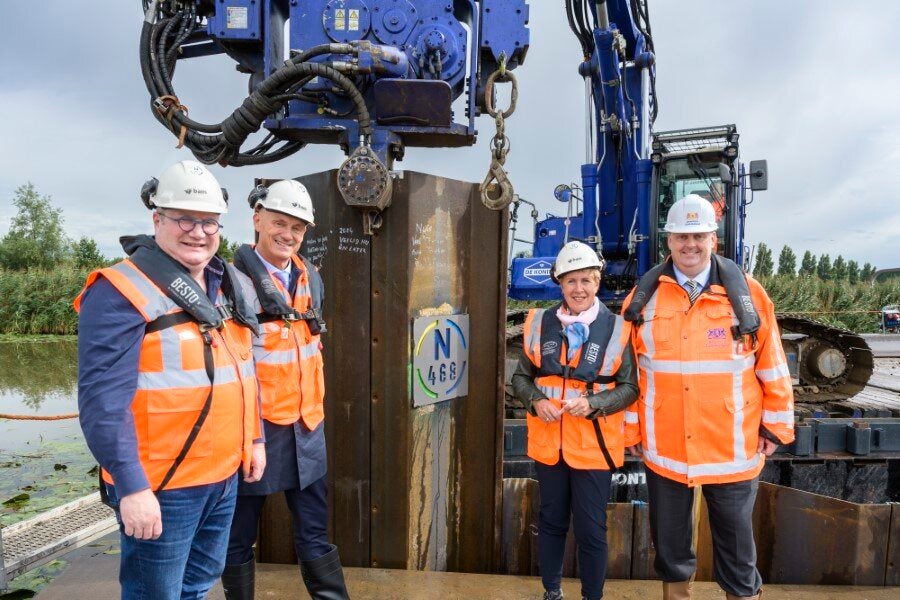 Afgevaardigden van de provincie Zuid-Holland, Hoogheemraadschap van Delfland, gemeente Midden-Delfland en aannemer BAM sloegen donderdagmiddag 12 september samen een damwand als start van het project groot onderhoud N468. De start van ruim vier km aan damwanden die aangebracht gaat worden om de dijk te verstevigen.