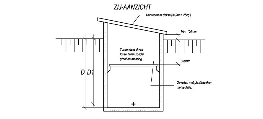 Er moet een trap aanwezig zijn voor onze medewerkers om veilig te kunnen afdalen in de meterput. Evides heeft technische tekeningen waar een meterput aan moet voldoen, afhankelijk van het kaliber watermeter (de MOS- opstelling). Voor meer informatie kunt u terecht bij: meterbeheer@evides.nl
